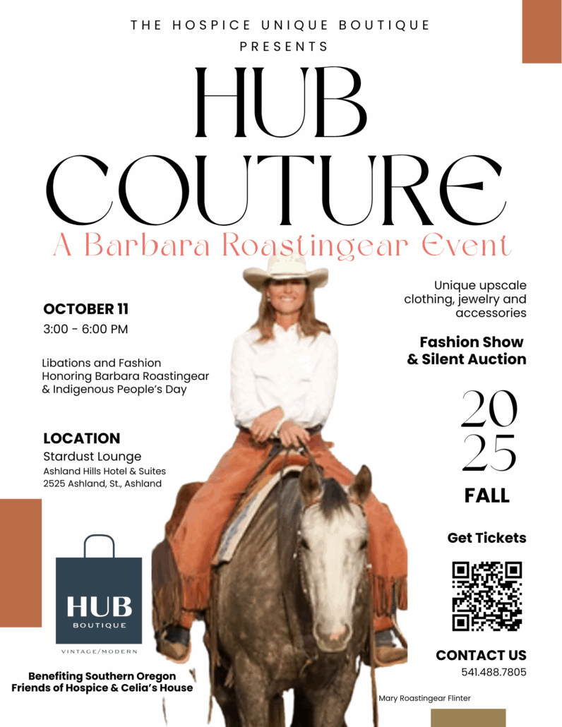 As we look ahead to this fall’s HUB Couture fashion event, we honor the woman whose spirit continues to inspire us: Barbara Roastingear Oliver. Barbara cherished her Native American heritage, her multitude of friends, art, laughter, and family. Though her passing at Celia’s House on December 2, 2023, was a moment of great loss, her legacy of generosity, creativity, and friendship remains vibrant in our community.